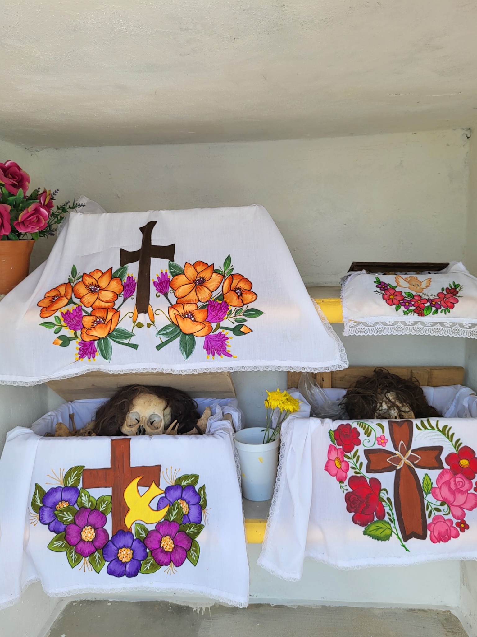 Ezek a színes oltárok egyben művészeti alkotások is, melyek az elhunyt családtagok iránti szeretet személyes kifejezései: Az emlékezést és a megélt évek ünneplését szolgálják.