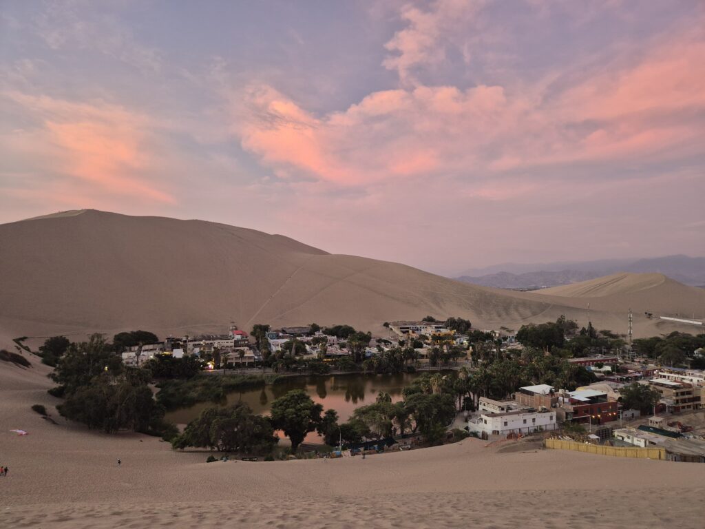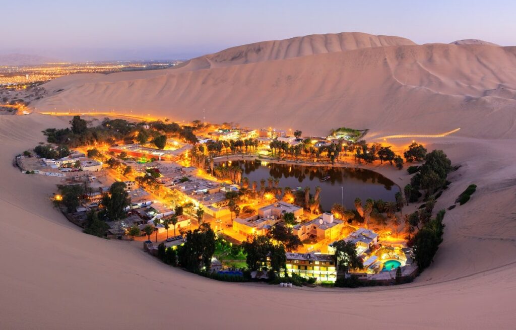 A Peru délnyugati részén, az Ica-sivatag homokdűnéi között meghúzódó Huacachina-oázis az ország egyik legkülönlegesebb földrajzi képződménye. A lagúna körül kialakult apró falu állandó lakossága alig száz főre tehető, ám jelentősége messze túlmutat méretein: Dél-Amerika egyetlen természetes sivatagi oázisáról van szó, amely évtizedek óta a perui turizmus egyik emblematikus és meghatározó úti célja.