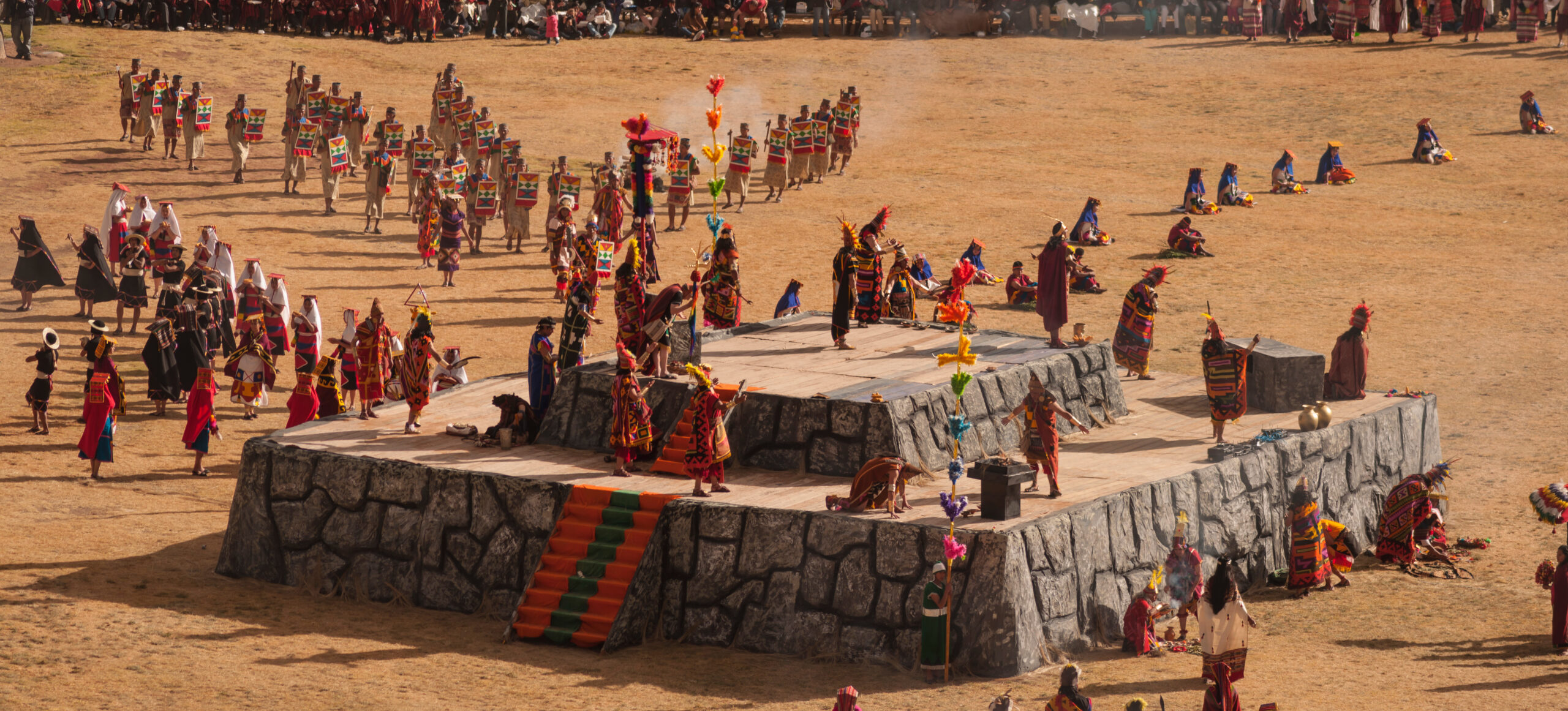 A napi rituálék során a Sapa Inka a Saqsayhuaman nagy terére lépett be, virágszirmokból álló szőnyegen sétálva, egy pap kíséretében, aki elűzte az összes gonosz szellemet, amely ártani akart a főembernek vagy nemeseinek. E napnak szentelt szertartás során az inkák hajnaltól alkonyatig különleges táncokat jártak, amelyek során kokaleveleket égettek, és a rituálé részeként chichát ittak.