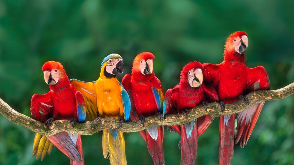 A madárvilág több száz fajából kiemelkedik a ritka hárpia (a kontinens legnagyobb ragadozó sas faja), de színes tukánokkal, a különleges hoacín madárral, királykeselyűvel, számos kolibrifajjal, és természetesen a papagájfélék megszámlálhatatlan képviselőivel is találkozhatunk. Utóbbiak közül a leglátványosabbak a nagyméretű ara papagájok – érdekesség, hogy Tambopata ad otthont a világ egyik legnagyobb vadon élő arapapagáj-populációjának. A rezervátum területén több helyen találhatók agyagos partfalak, melyek a fotósok és madárkedvelők kedvenc helyszínei közé tartoznak. Nem csoda, hiszen a falak mentén hajnalonta élénkpiros, kék-sárga és zöld arák, valamint amazóniai papagájok százai gyülekeznek, hogy ásványi anyagokban gazdag agyagot nyalogassanak a partról.
